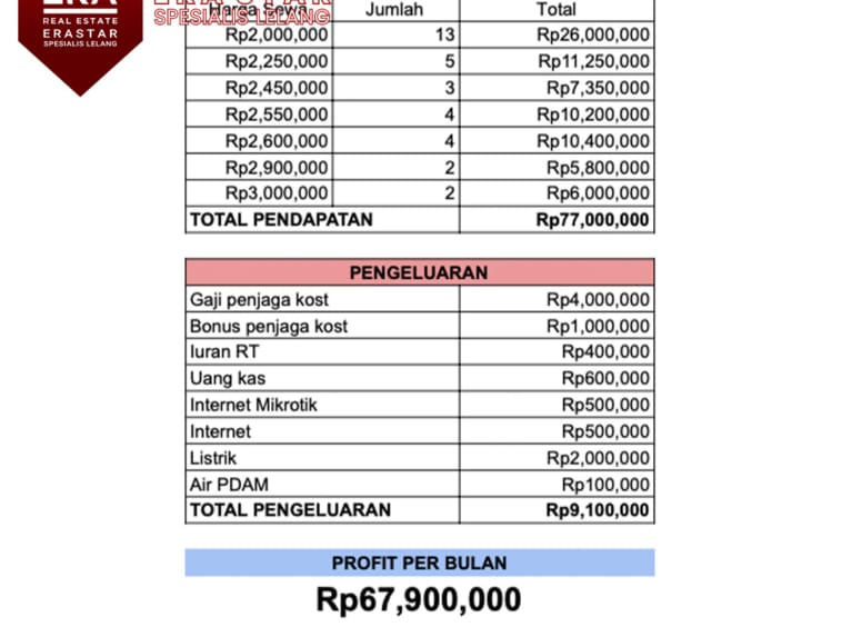 Total pendapatan per bulan 77JUTA
