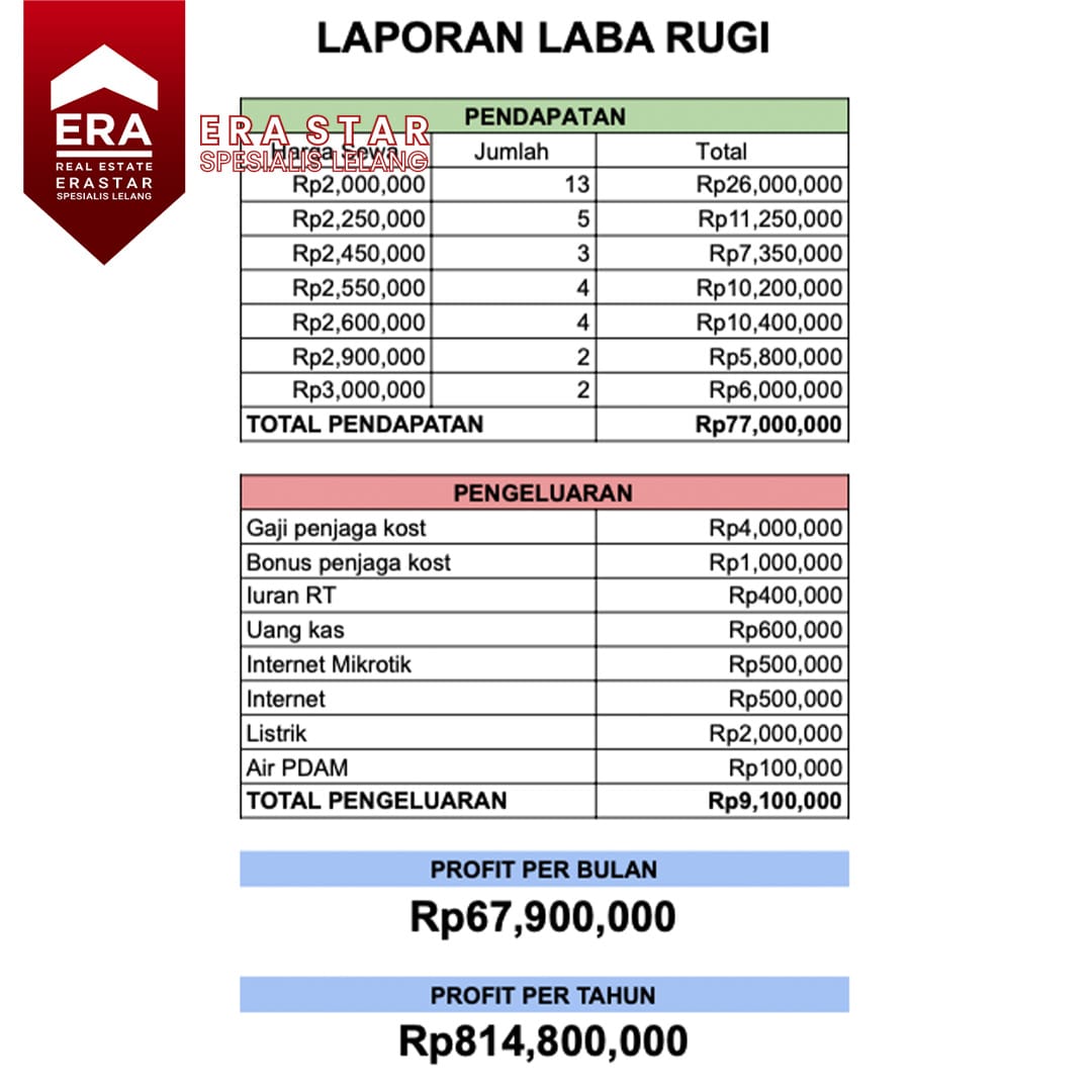 – Kondisi full furnished dan tersewa anak kost